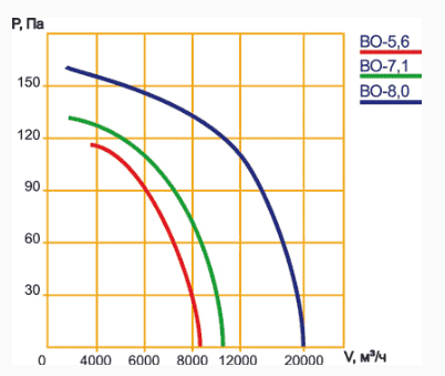 | Название вентилятора | Подача воздуха, м3/ч | Мощность электродвигателя, кВт | Частота вращения, об/мин | Питание | Уровень шума, дБ (А) | Степень защиты | Макс. Температура перемещаемого воздуха, С | Масса, кг |